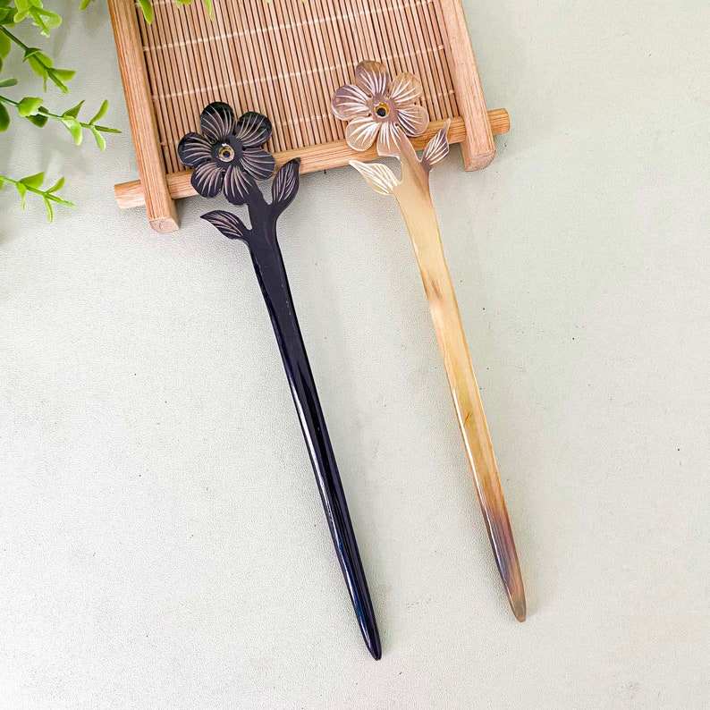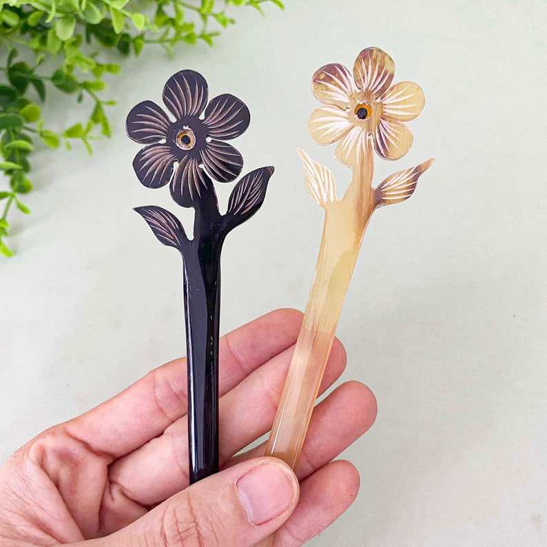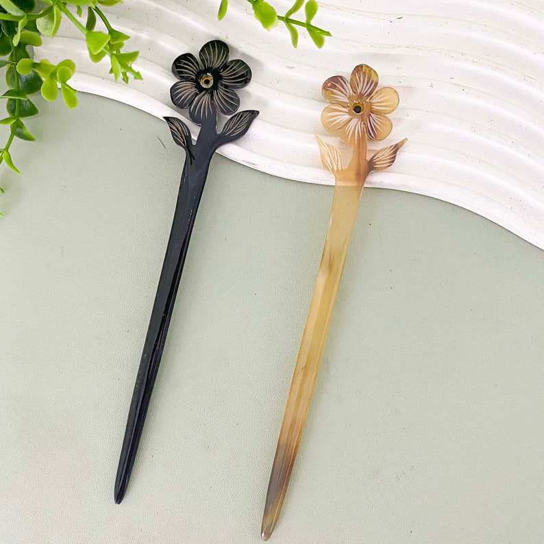 Real Cow Horn Carved Hair Stick Bird Holder Clips for Women & Girls