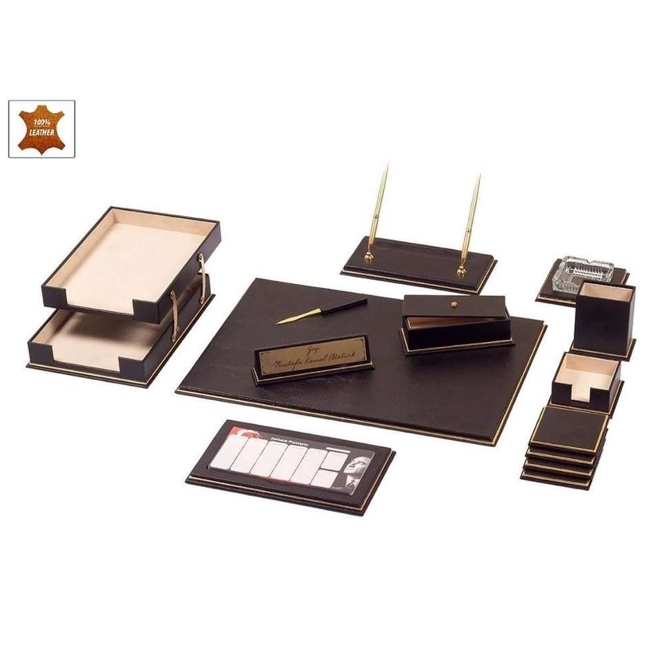 Real Cow Leather Desk Set with 15 Modern Office Accessories Includes Pen Case & Notepads Made From Durable PU Leather