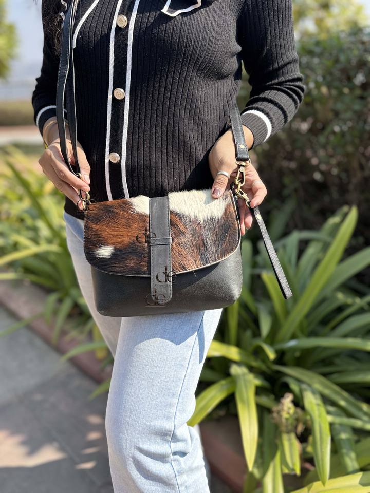 Real Cowhide Fur Hair on Hide Handbag Crossbody Sling Bag Stylish Hot Selling Shoulder Sling Bag for Women