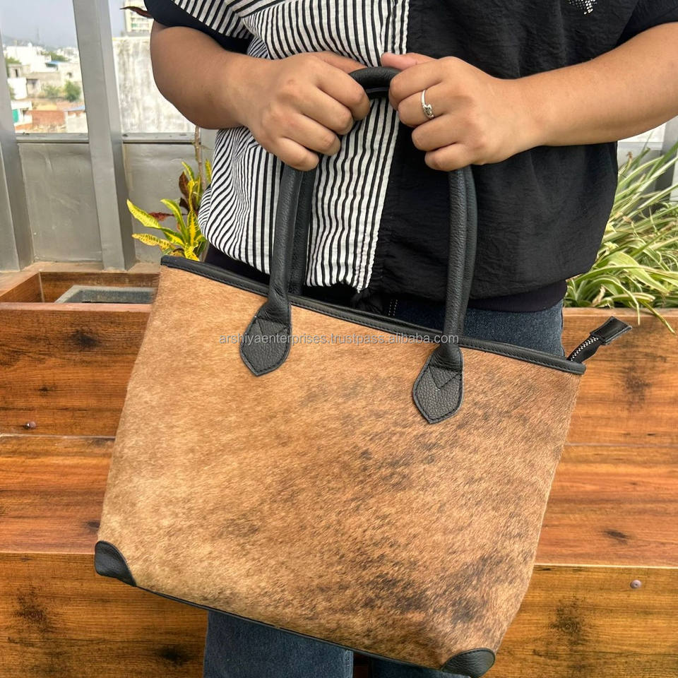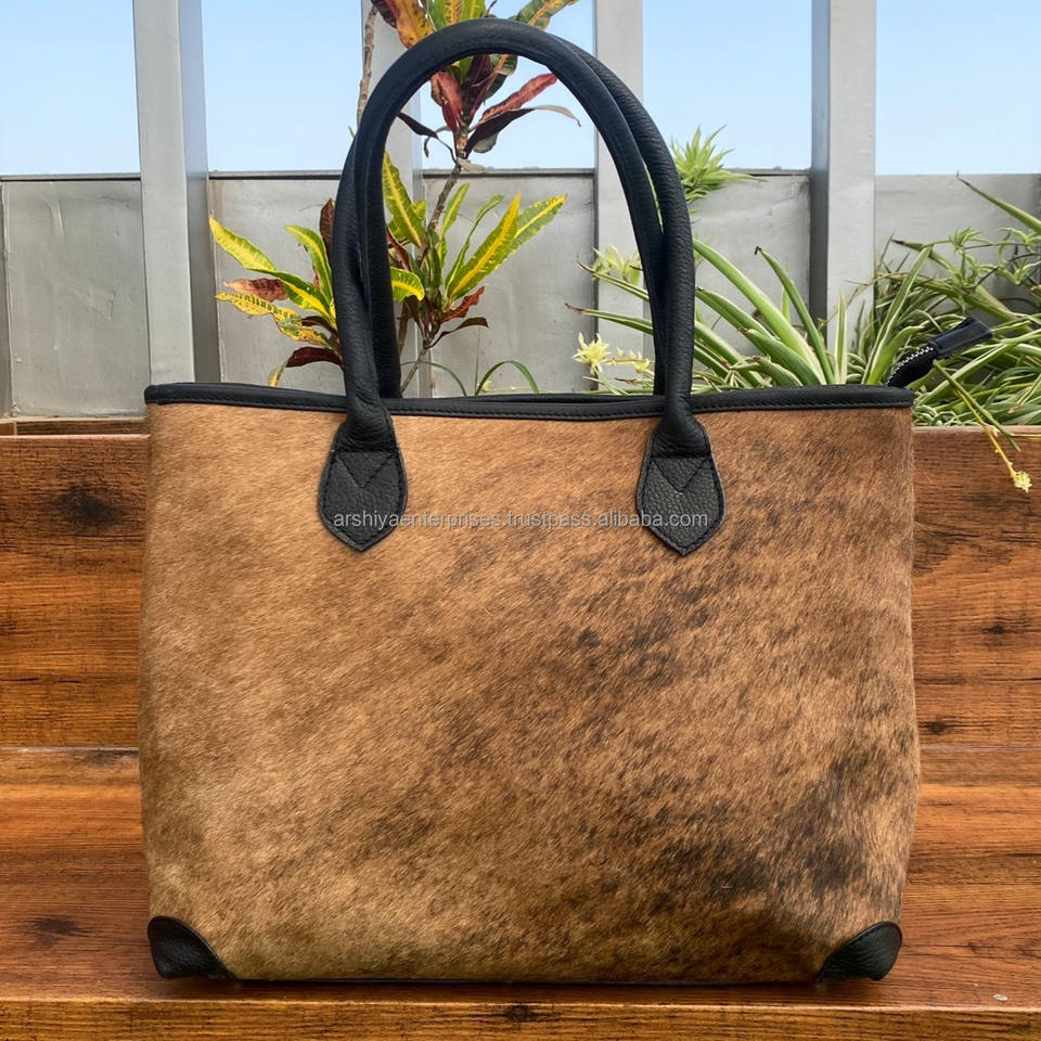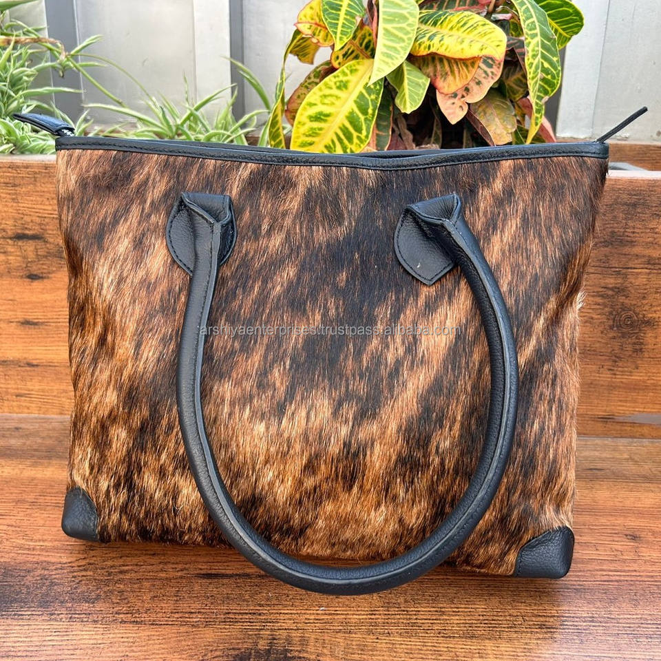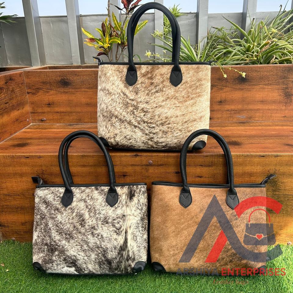 Real Cowhide Fur Leather Big Size Tote Bag Shoulder Bag Hair on Hide Handbag Stylish Collection Shopping Bag for Women's Use