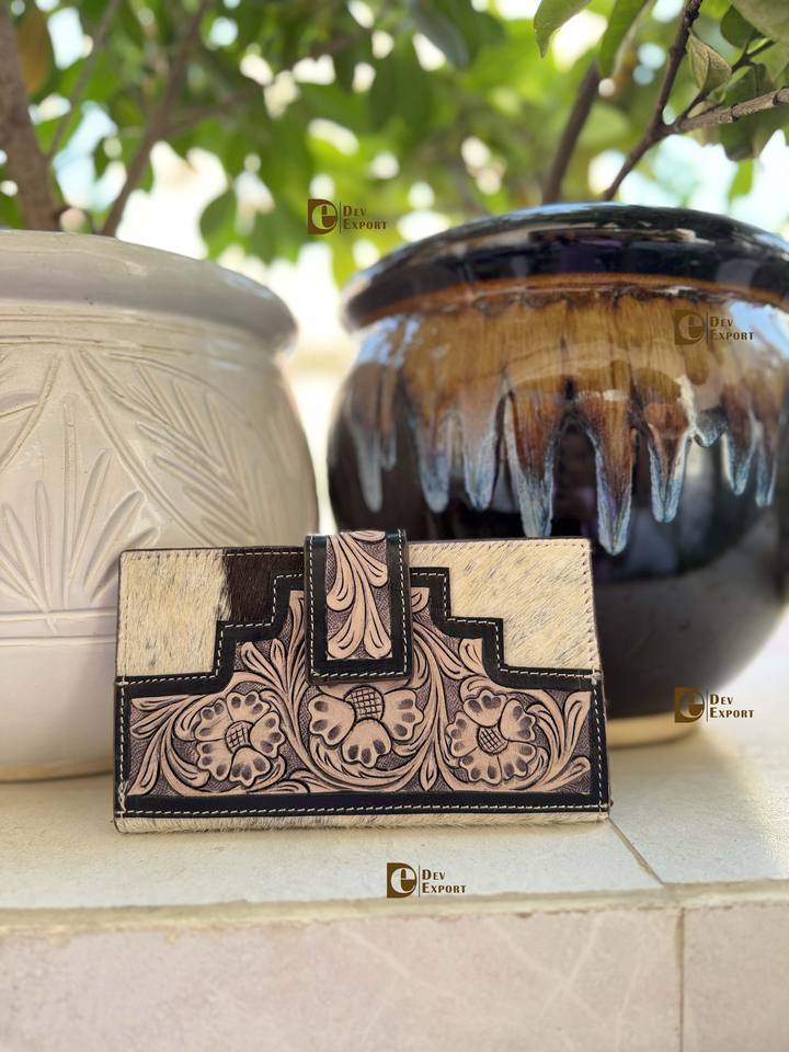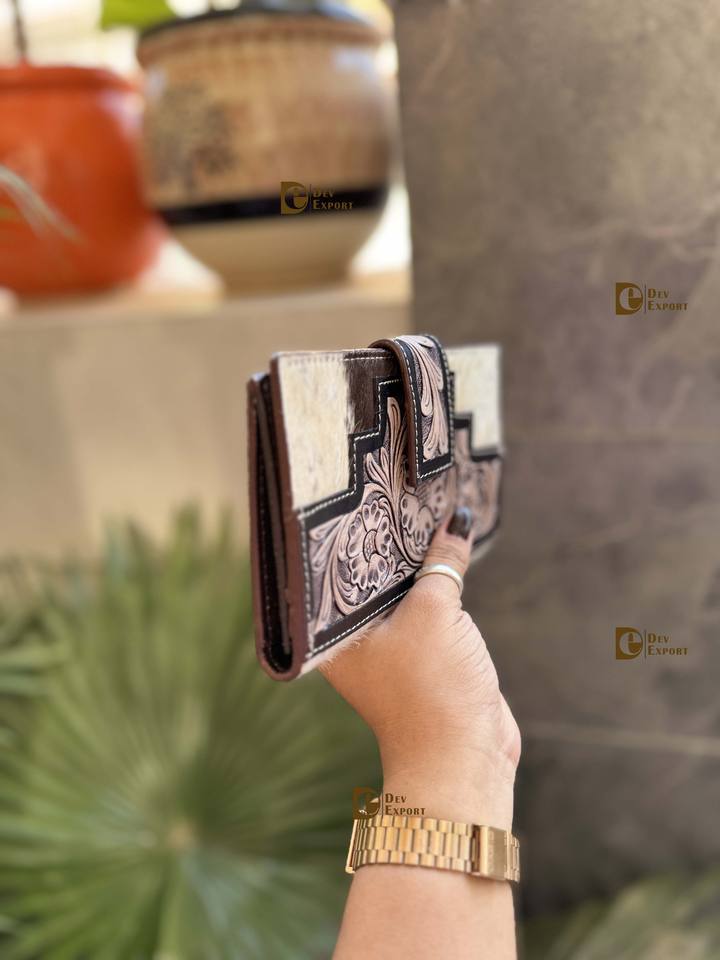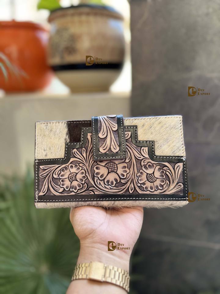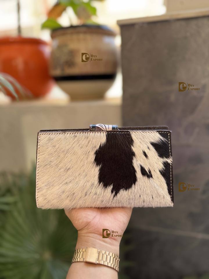 Vintage Real Cowhide Fur Leather Clutch Handbag Women Fashionable Multi-Use Wallet Tool Carving Summer Winter Waterproof Holds