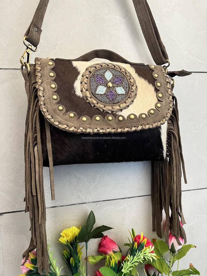Real Cowhide Fur Leather Handbag Fringe Western Stylish New Design Bag Adjustable Strap for Womens Girls