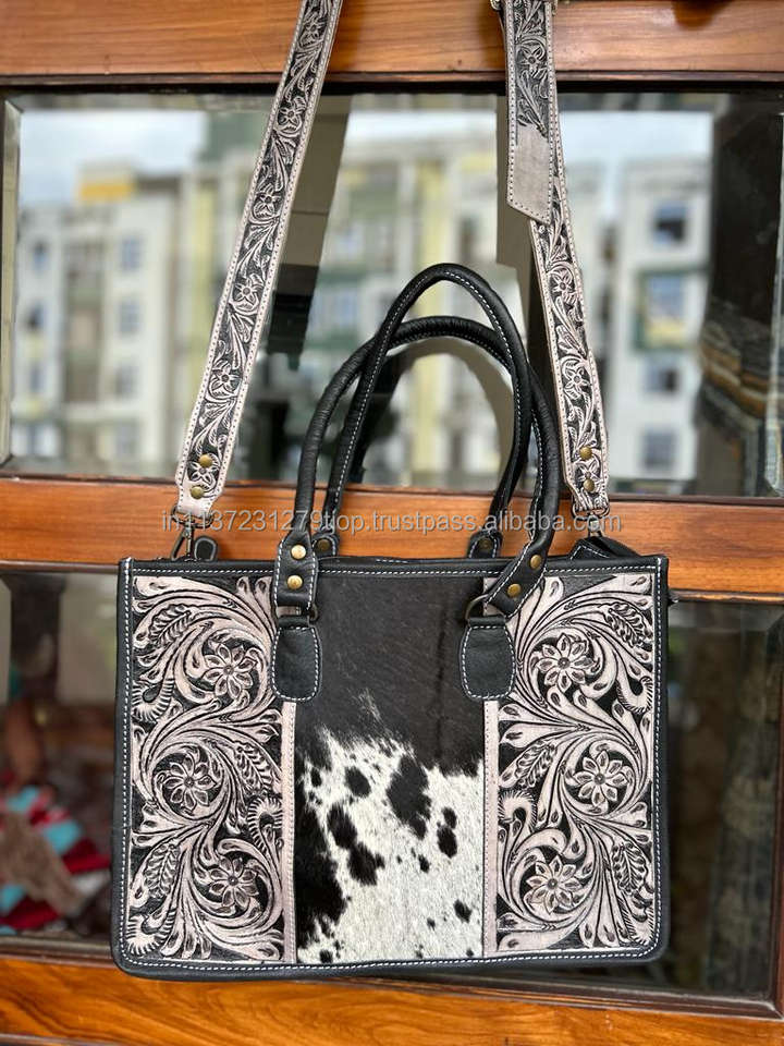 Product name:Handcrafted Tooled Fur Leather Women Tote Bag