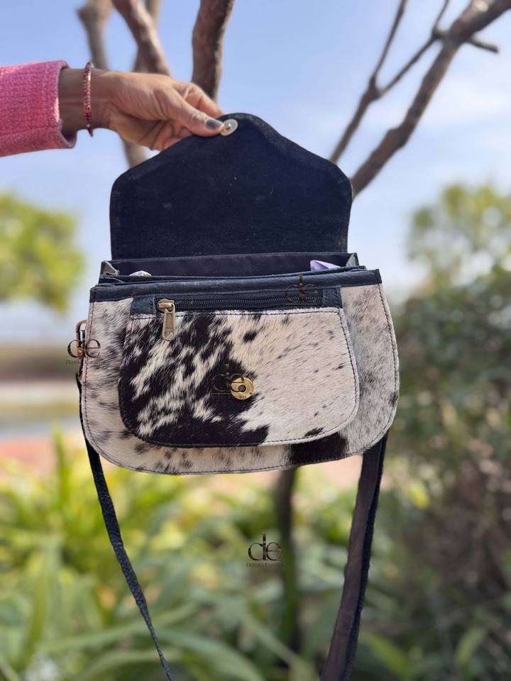 Real Cowhide Genuine Leather Handbag Crossbody Sling Bag Stylish Hot Selling Hair on Hide Fur Shoulder Sling Bag for Women