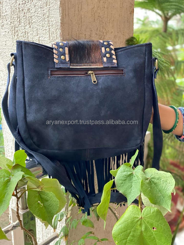 Real Cowhide Leather Fur Fringe Handbag Stylish Leather Purse Hair on Hide Games Stone Bohemian Handmade Bags in India