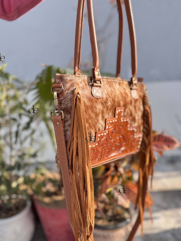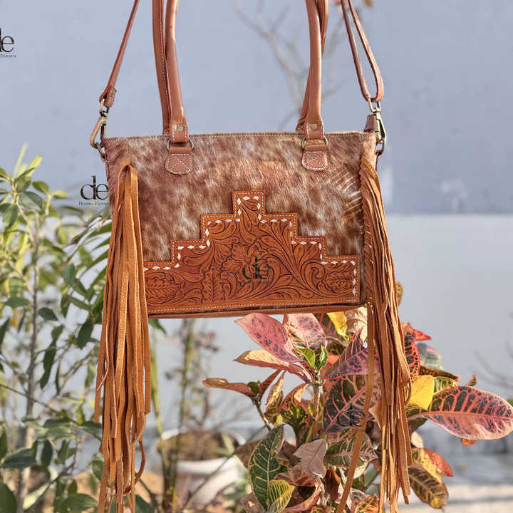 Real Cowhide Leather Western Style Bag Hand Tooled Carving Fringe Tote Bag New Designer Hot Selling Shoulder Bags for Women