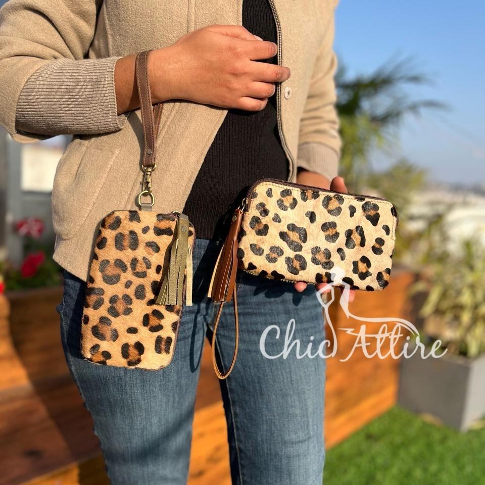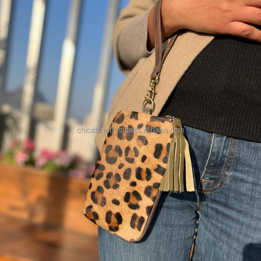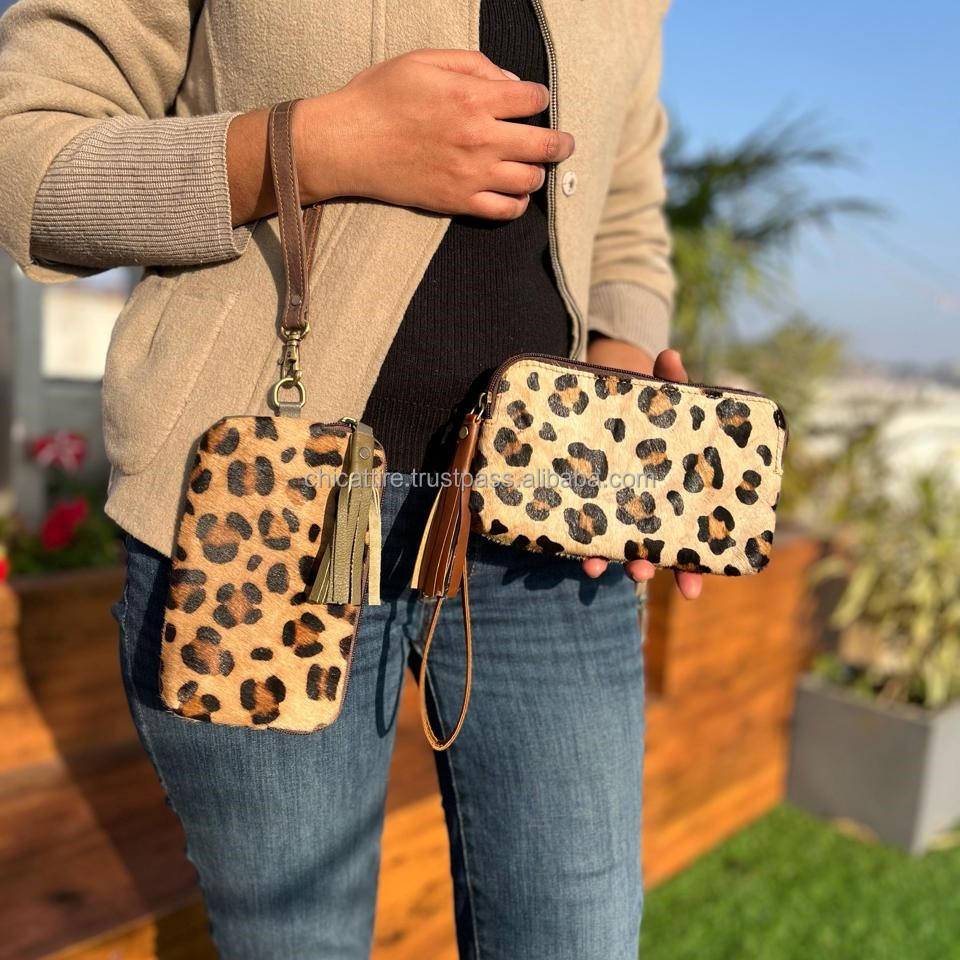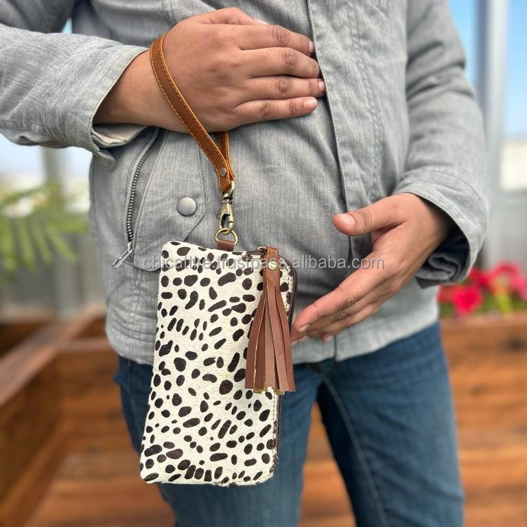 Real Cowhide Leather Wristlet Clutch Purse Pouch Brown Wallet Western Patches Hair on Hide Animal Print Genuine Leather Clutch