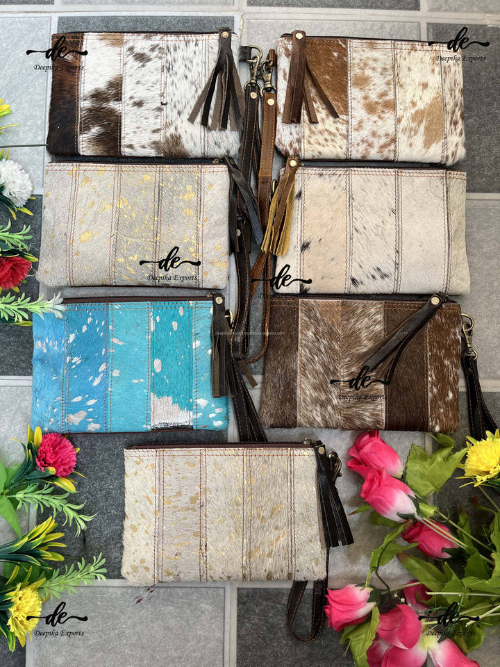 Real Cowhide Wristlet Clutch Purse Pouch Wallet Brown Wristlet Leather Small Pouch Stylish Western Patches Wallets