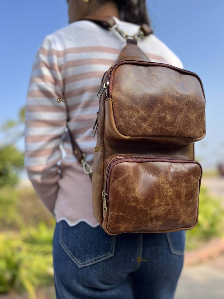 Real Crunch Genuine Leather Waterproof Zipper Backpack Multi-Use Laptop School Bag Hot Sale