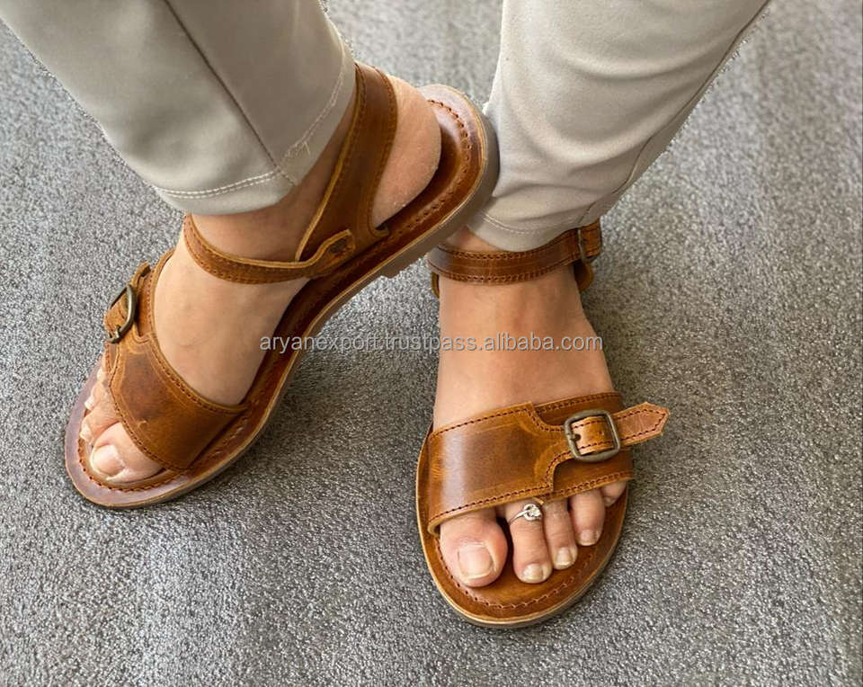 Real Crunch Leather Sandals Stylish Women Flat Flip Flop Slipper Women Leather Flat Unique Sandals