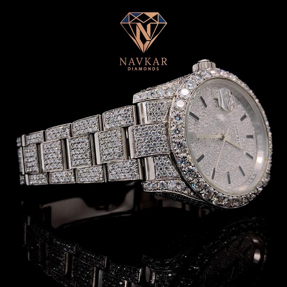 Real Diamond Luxury Hip Hop Iced Out Automatic Mechanical Watches Gold Bust Down VVS Moissanite Watch for Men