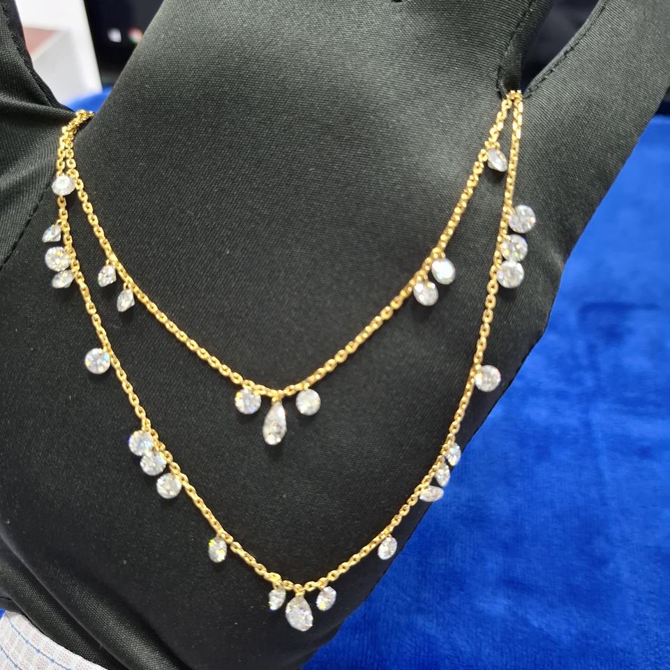 Real Diamonds Set Free Bare Floating Diamonds Necklace, 14k Gold Diamond Charms Necklace, Diamond Station Necklace