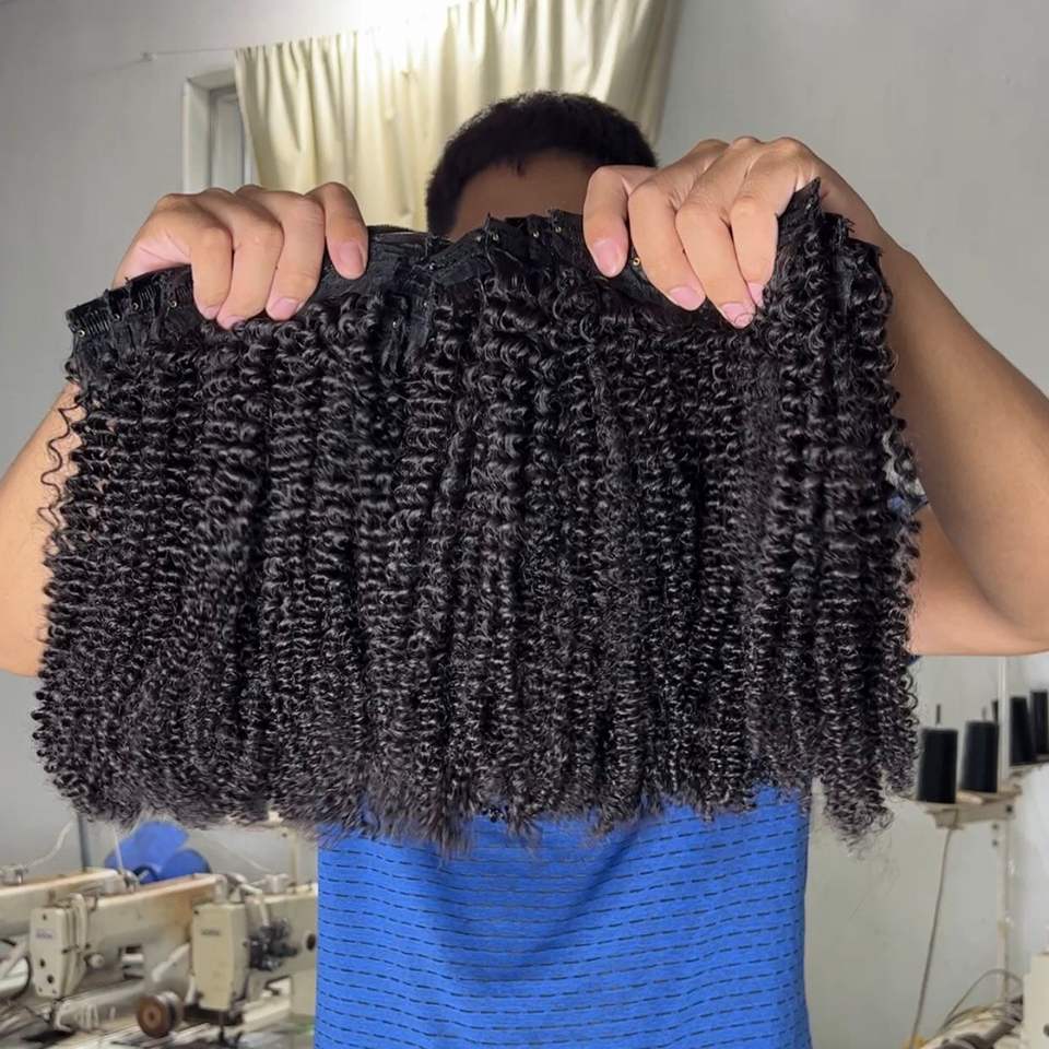 Real Double Drawn Remy Clip in Hair Extensions 100% Human Cuticle Alingned Clip in Kinky Curly Hair for Salon