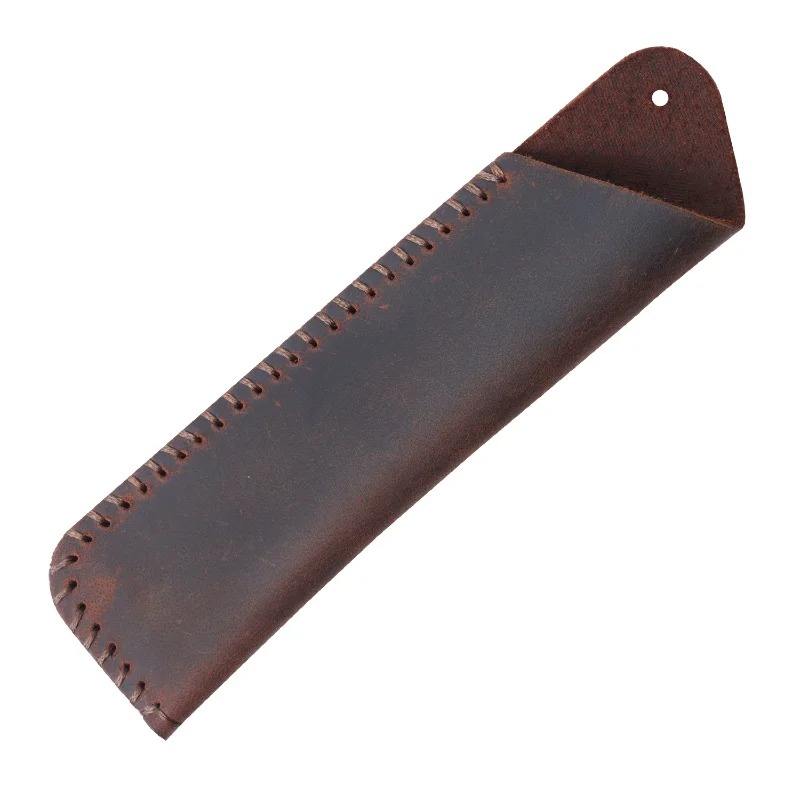 Real Genuine Leather School Pen Bag Pencil Case with Zipper Closure Portable Large Capacity Fashion Design for Students