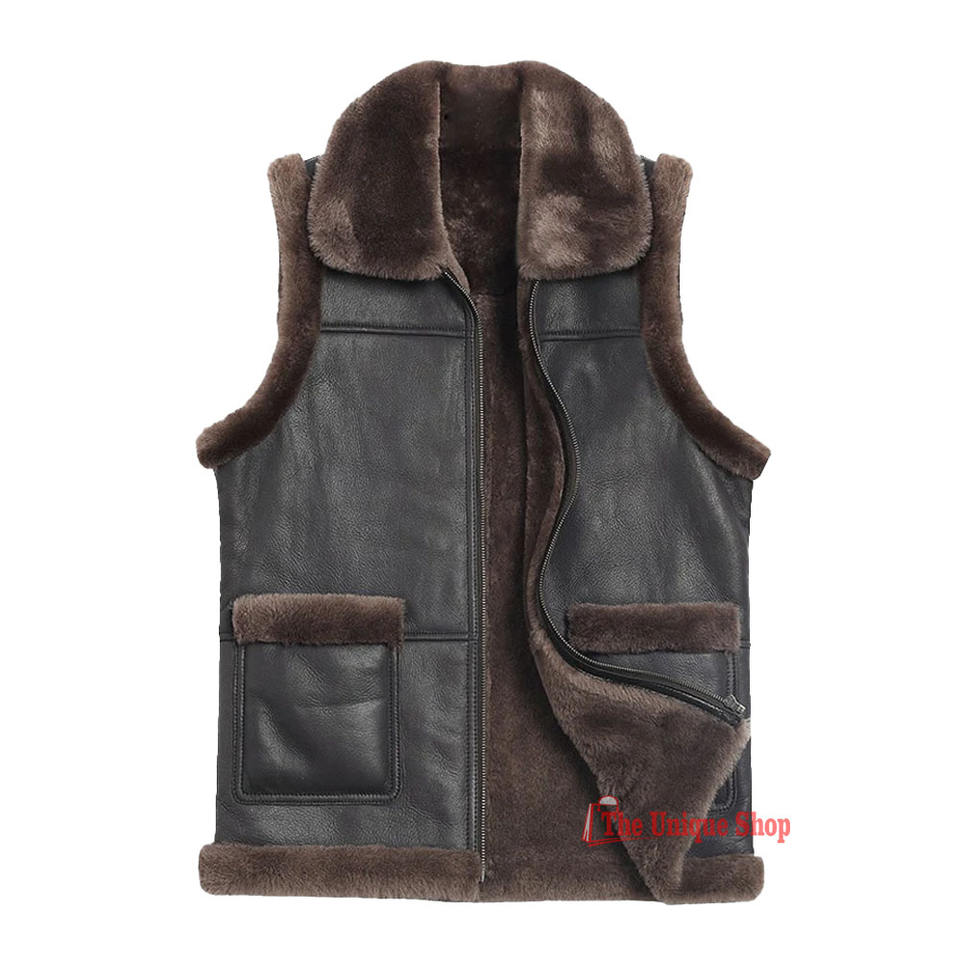 Real Genuine Sheepskin Leather Waist Coat For Men Fur Sleeveless Vest - Casual Sleeveless Jackets Winter Waistcoat - Unisex