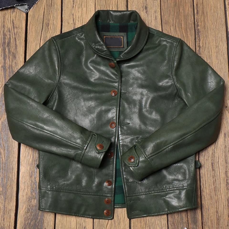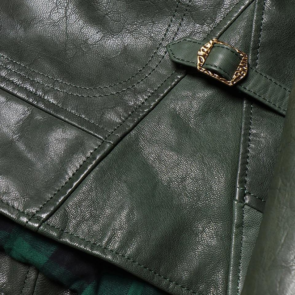 Real Goat Leather Man's Jacket Japanese Style Summer Slim Fit Short Coat Men's Genuine Leather Jackets Bomber Overcoat Green