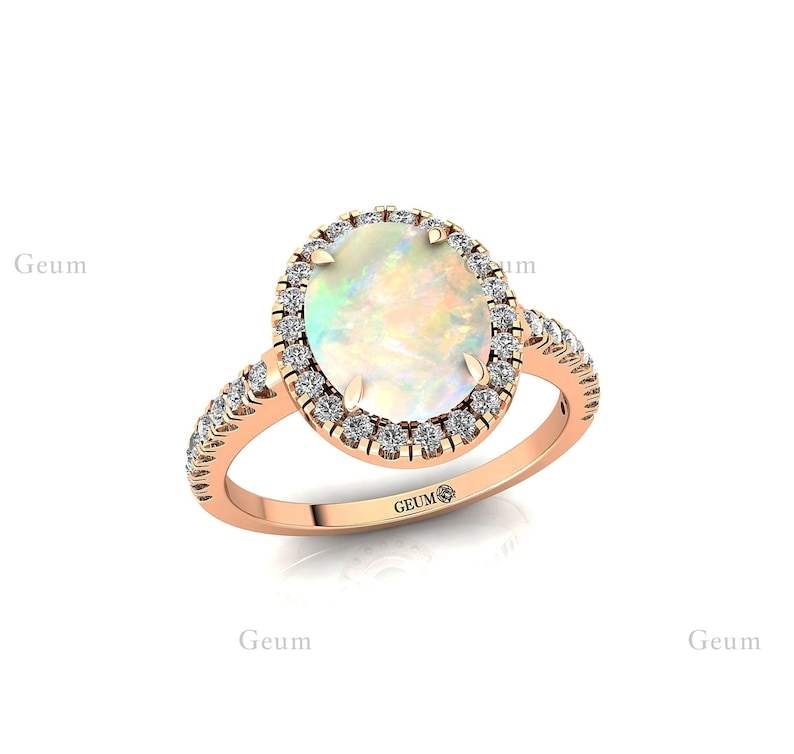 Real Gold Ring 24K Ethiopian Opal Elegant New Design Solid Gold Fine Jewelry Rings With Real Diamonds Ring