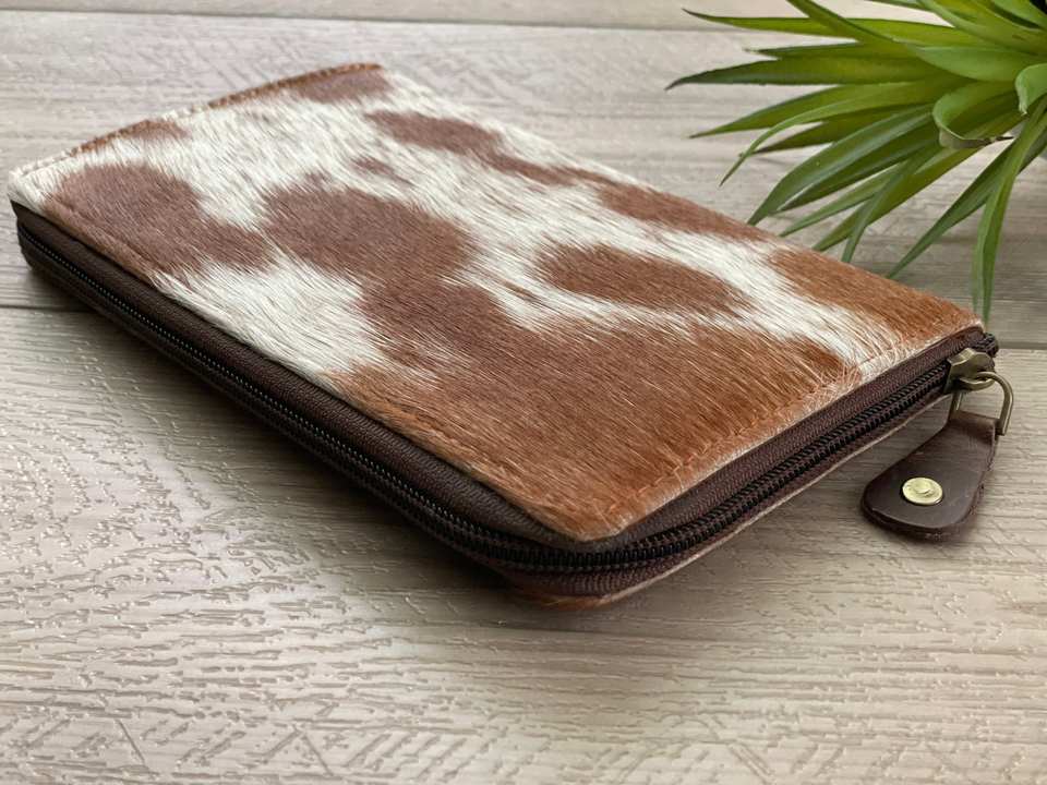 Real Handmade Cowhide Hair On Skin Leather Clutches Western Style Money Card Holder Phone Case Leather Zip Continental Purse set