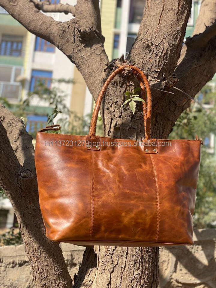 Real Handmade Crunch Leather Tote Bag Women Stylish Shopping Bag Causal Big Size Tote Bag Best Gift for Women
