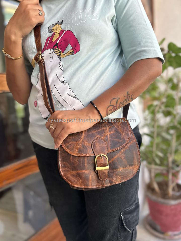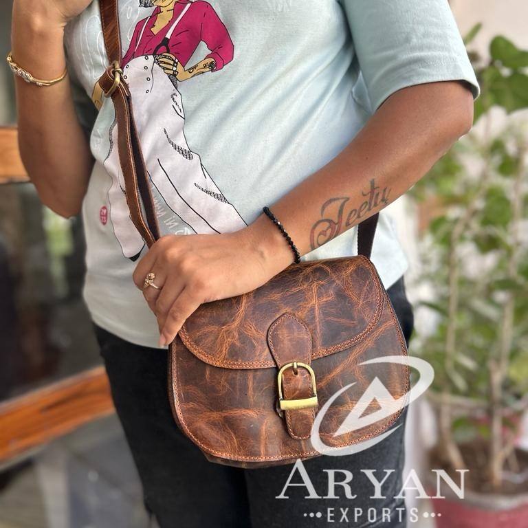 Real Handmade Full Grain Genuine Crunch Leather Handbag Stylish Women Real Vintage Leather Office Use Cross Body Shoulder Bag