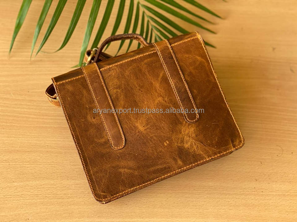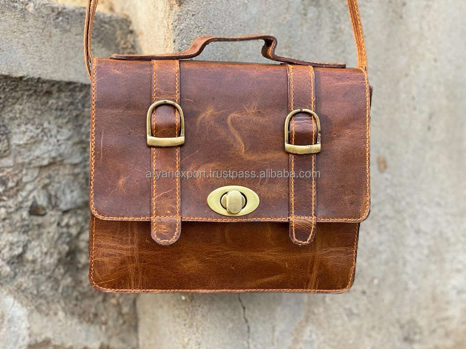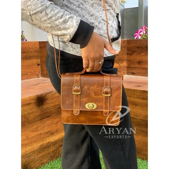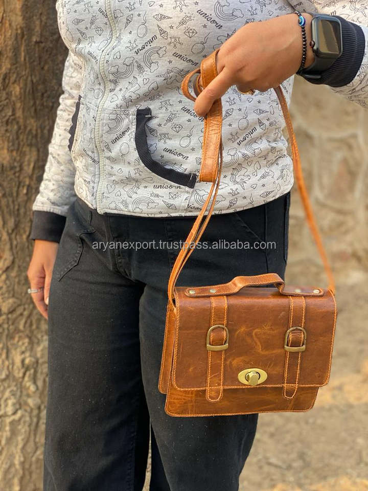 Real Handmade Full Grain Genuine Crunch Leather Handbag Stylish Women Real Vintage Leather Office Use Cross Body Shoulder Bag