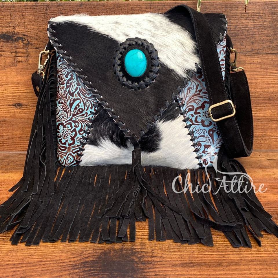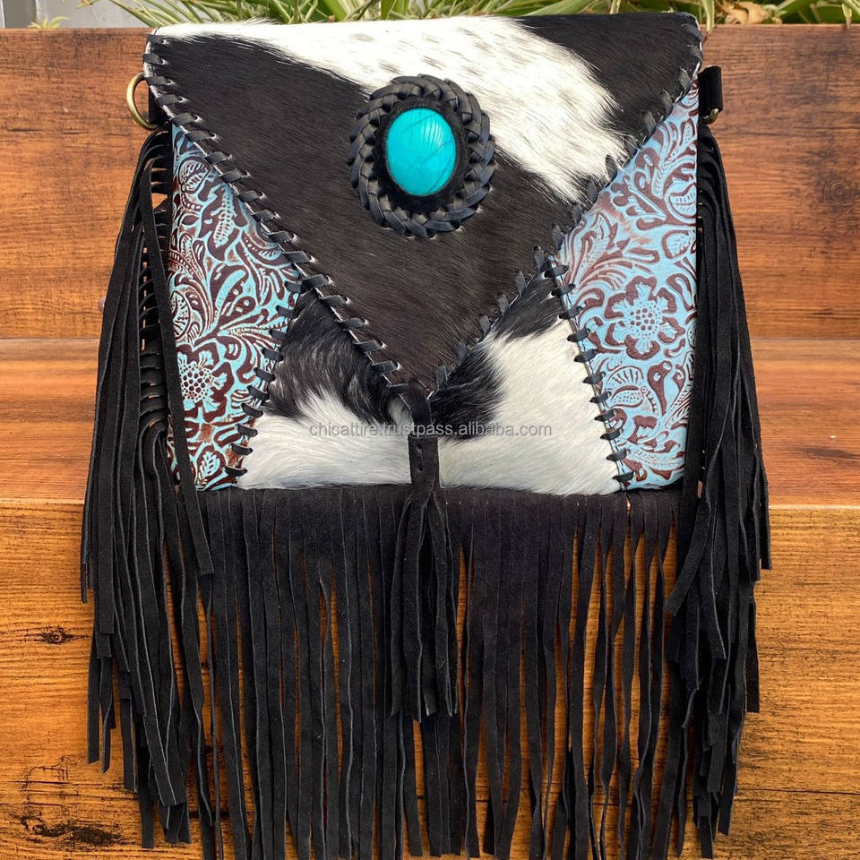 Product name:Embossed Cowhide Leather Fringe Crossbody Bag