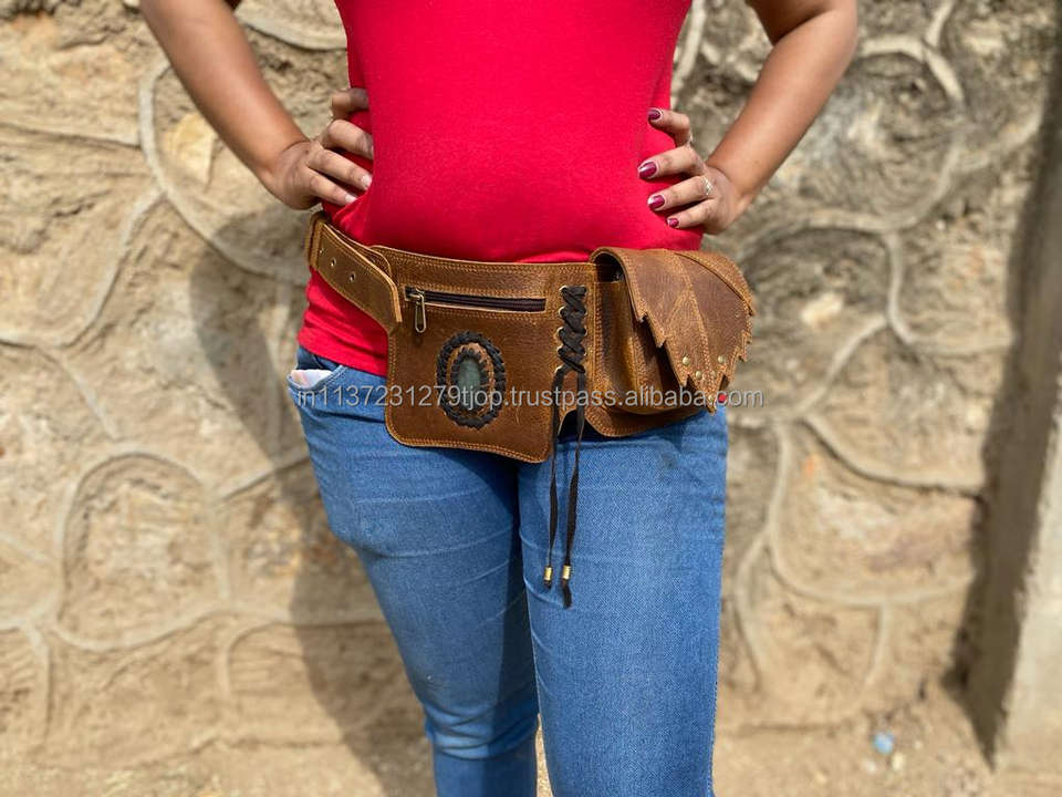 Real Handmade Genuine Leather Utility Belt Hip Pocket Belt Hot Selling High Quality Festival Belt Multi Pocket Hip Bag for Women