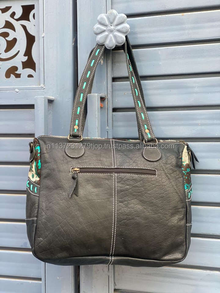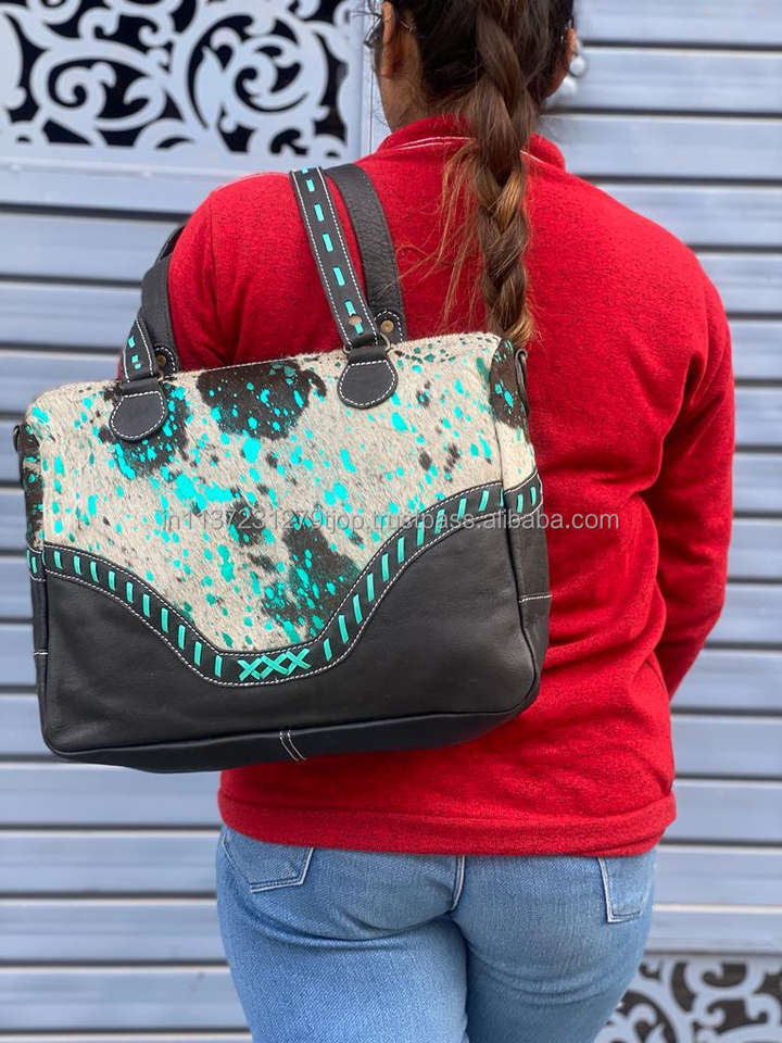 Real Handmade Hair on Hide Tote Bag Metallic Fur Leather Shoulder Bag Stylish Unique Turquoise Color Hot Selling Tote Bag