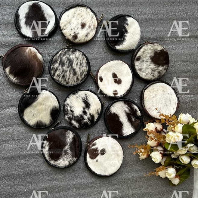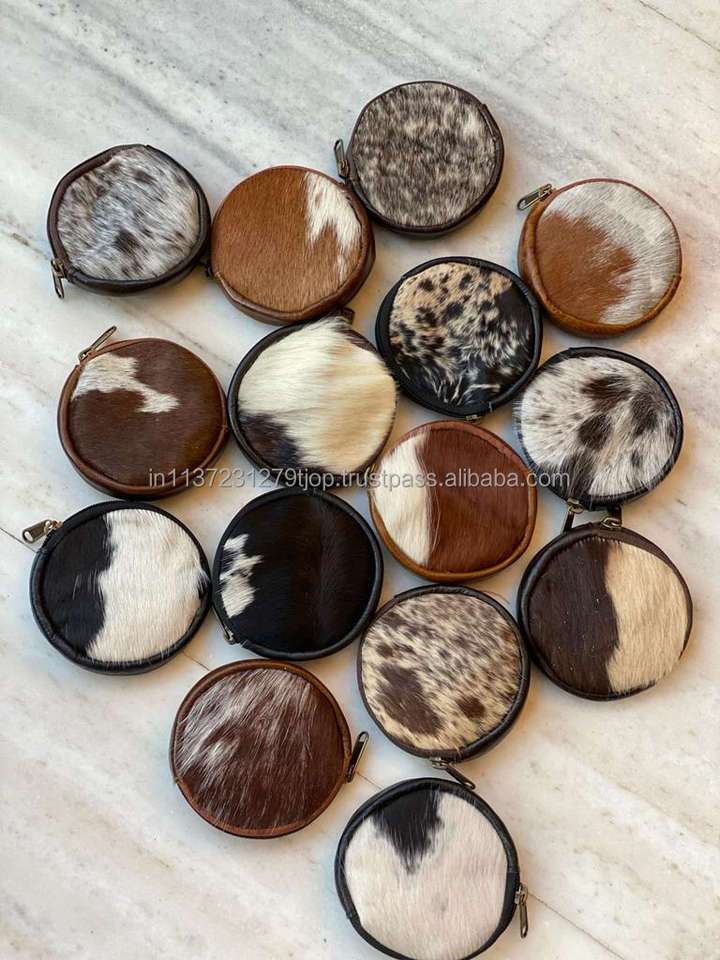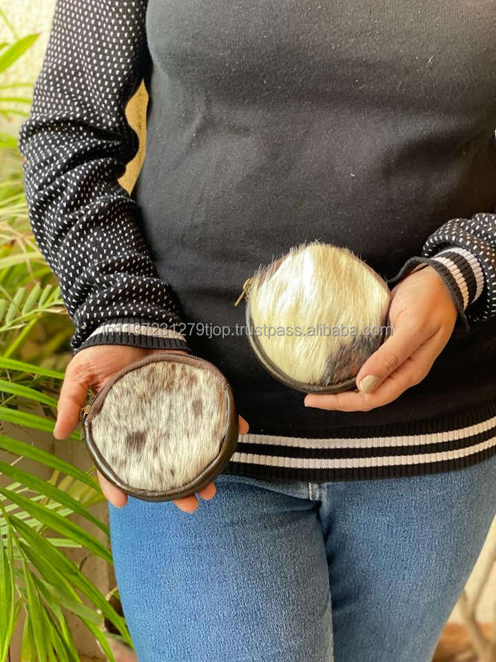 Real Handmade Hair on Hide Fur Leather Coin Change Purse Round Credit Card Holder Case Western Stylish Cute Small Round Wallet