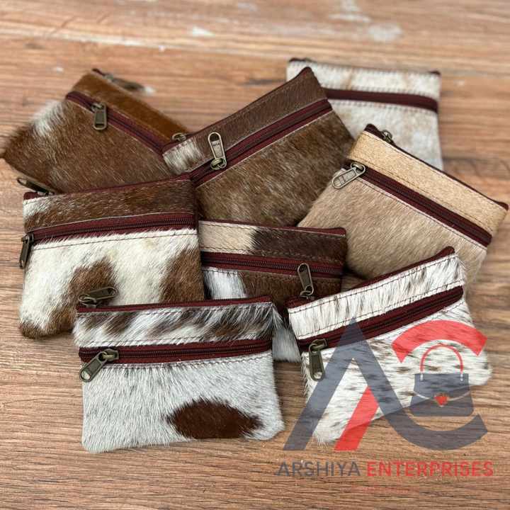 Real Handmade Hair on Hide Fur Leather Coin Change Purse Oval Credit Card Holder Case Western Stylish Cute Small Oval Wallet