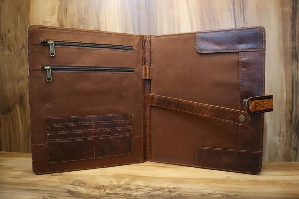 Real Handmade Hair on Tooled Leather Portfolio Organizer Portfolio A4 Customized Leather Document Portfolio File