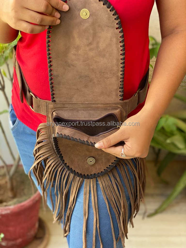 Real Handmade Leather Money Belt Fringe Leather Waist Pocket Belts Handmade Stylish Belts