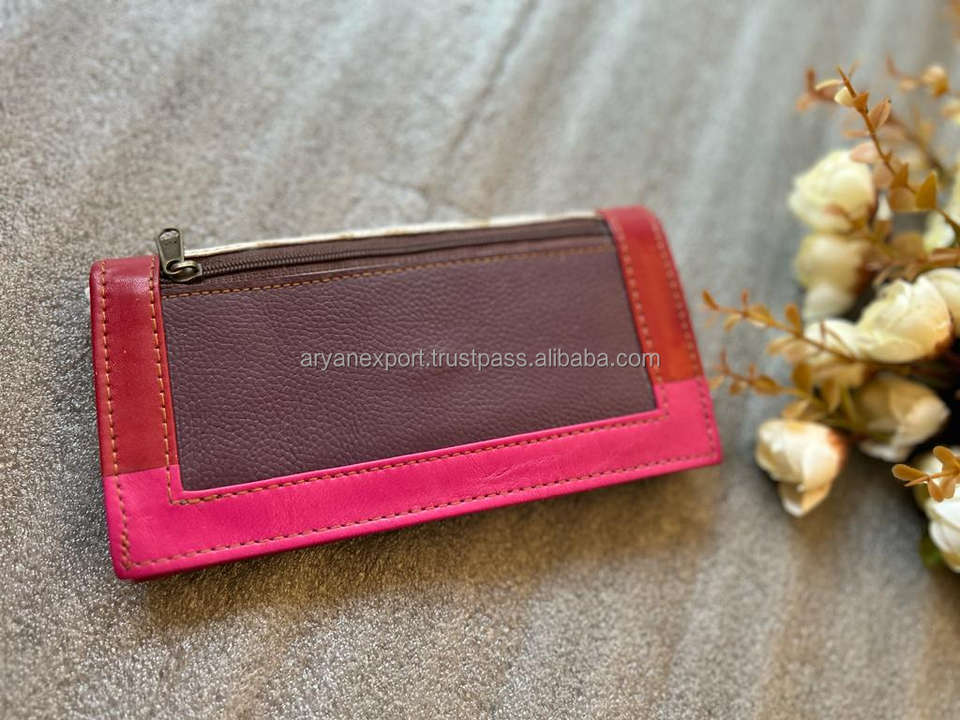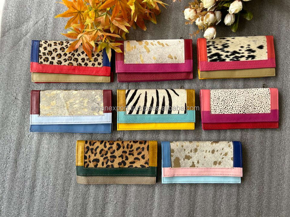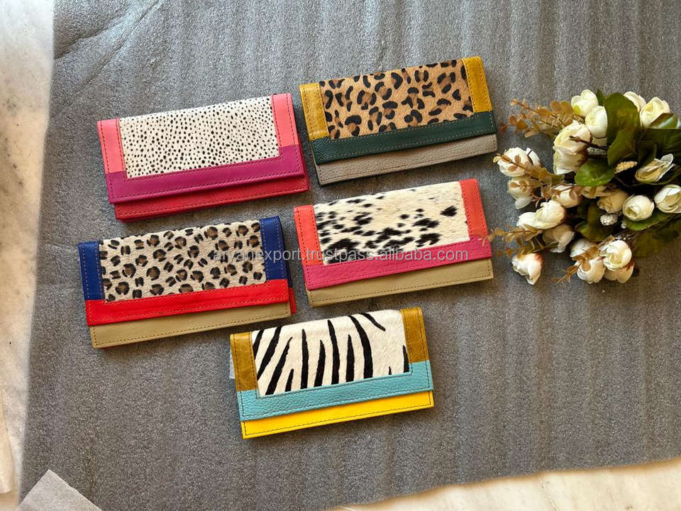 Real Handmade Recycled Animal Print Fur Leather Women Clutch Stylish Stubby Rainbow Color Multiuse Purse ATM Card Holder Wallets