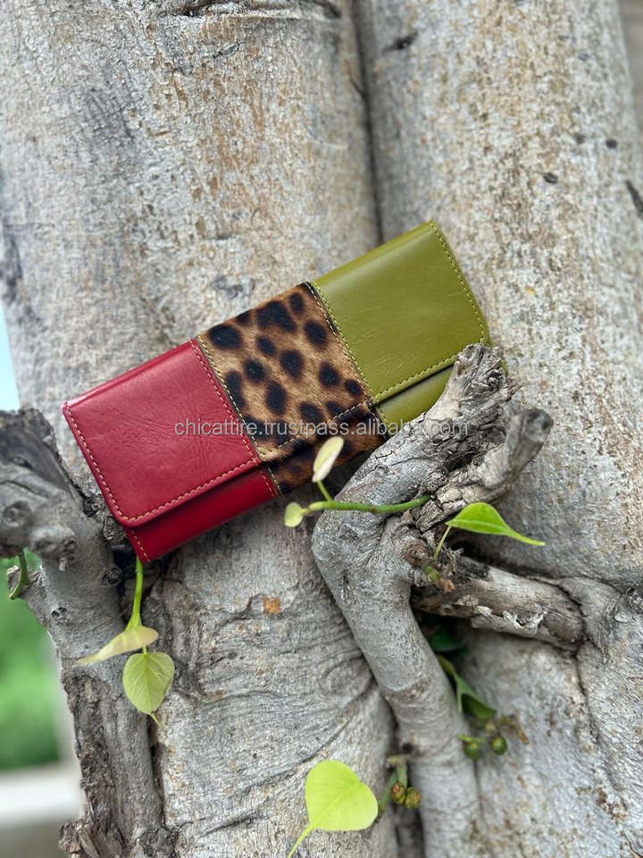 Real Handmade Recycled Animal Print Fur Leather Women Clutch Stylish Stubby Rainbow Color Multiuse Purse ATM Card Holder Wallets