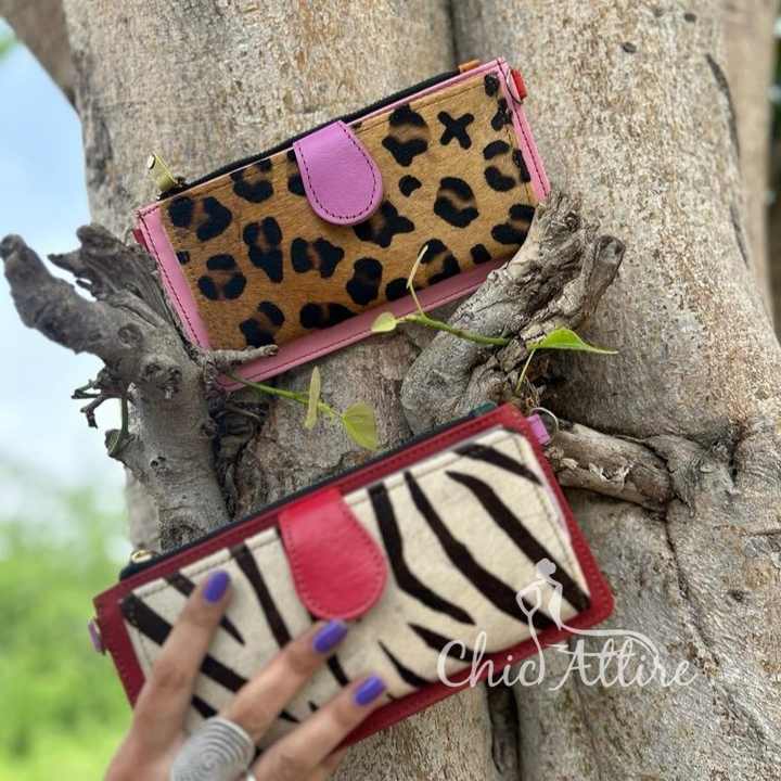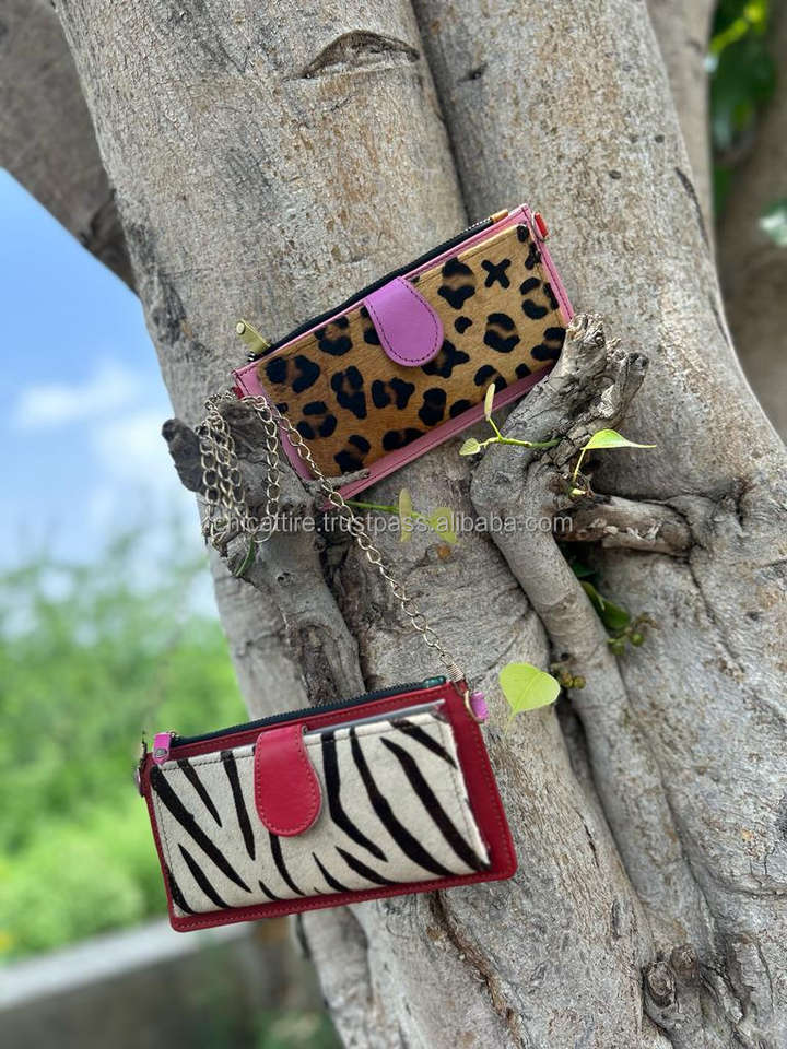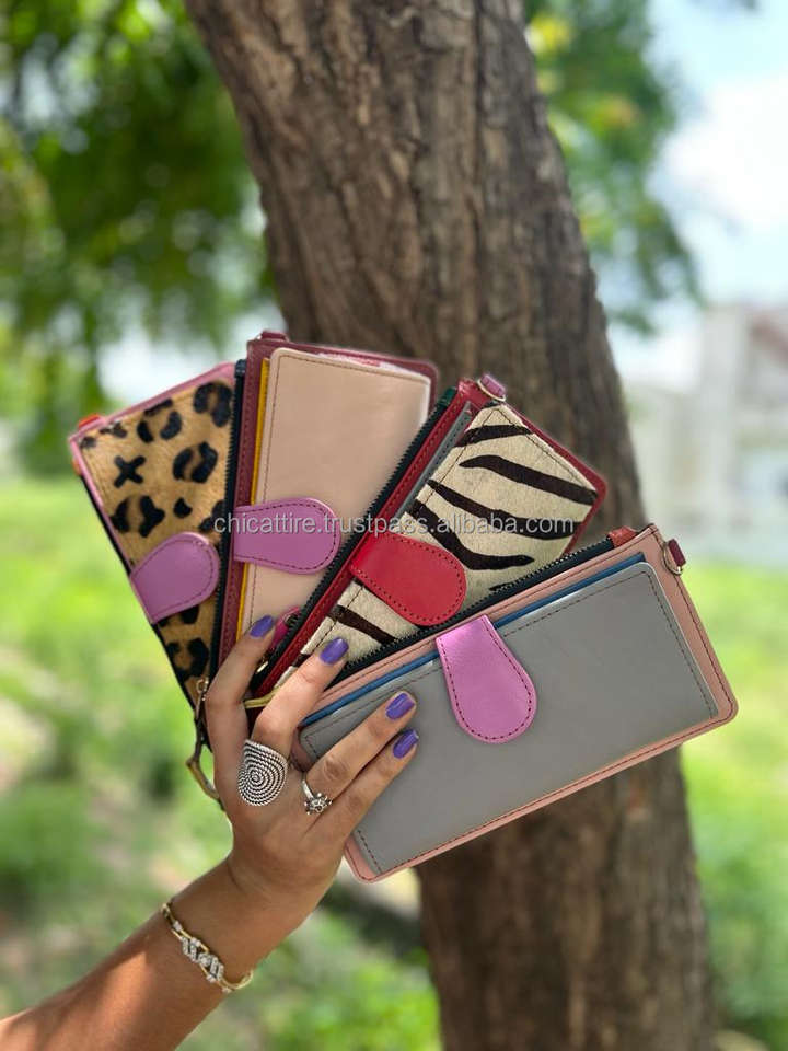 Real Handmade Recycled Animal Print Fur Leather Women Clutch Stylish Stubby Rainbow Color Multiuse Purse ATM Card Holder Wallets