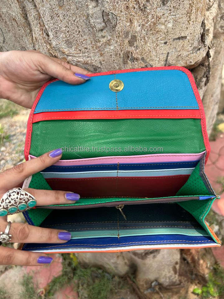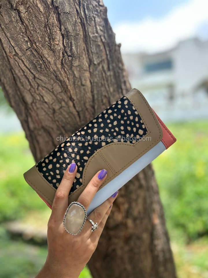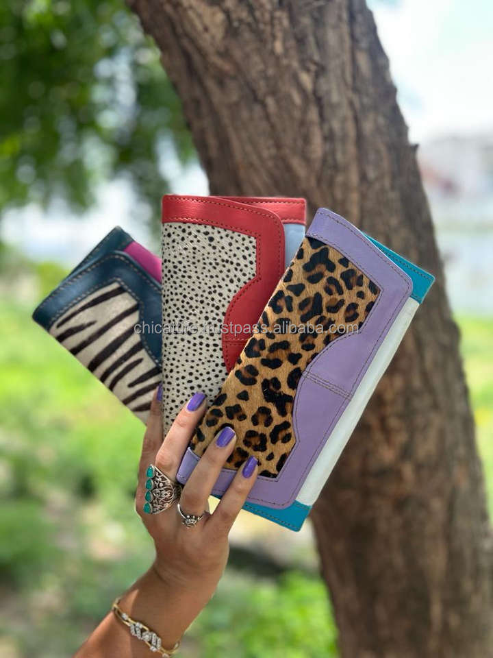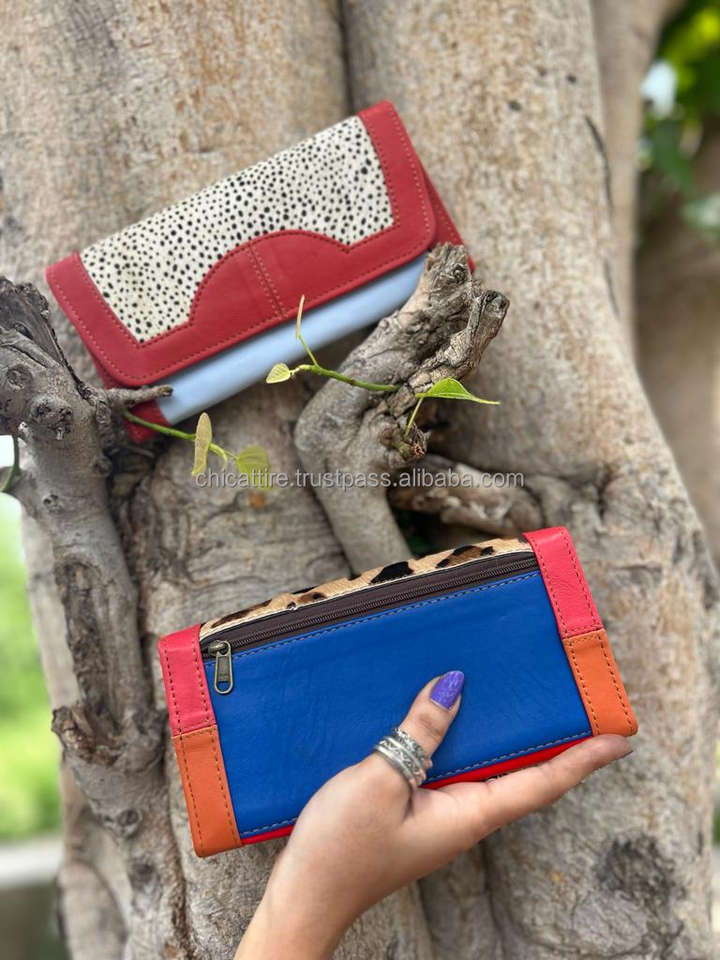 Real Handmade Recycled Animal Print Fur Leather Women Clutch Stylish Stubby Rainbow Color Multiuse Purse ATM Card Holder Wallets