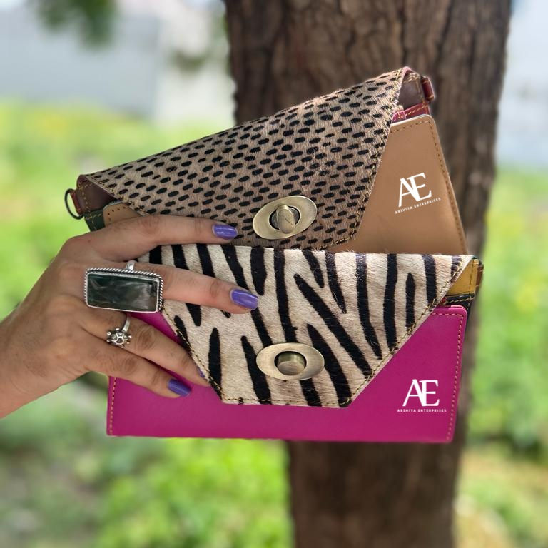 Real Handmade Recycled Animal Print Fur Leather Women Clutch Stylish Stubby Rainbow Color Multiuse Purse ATM Card Holder Wallets