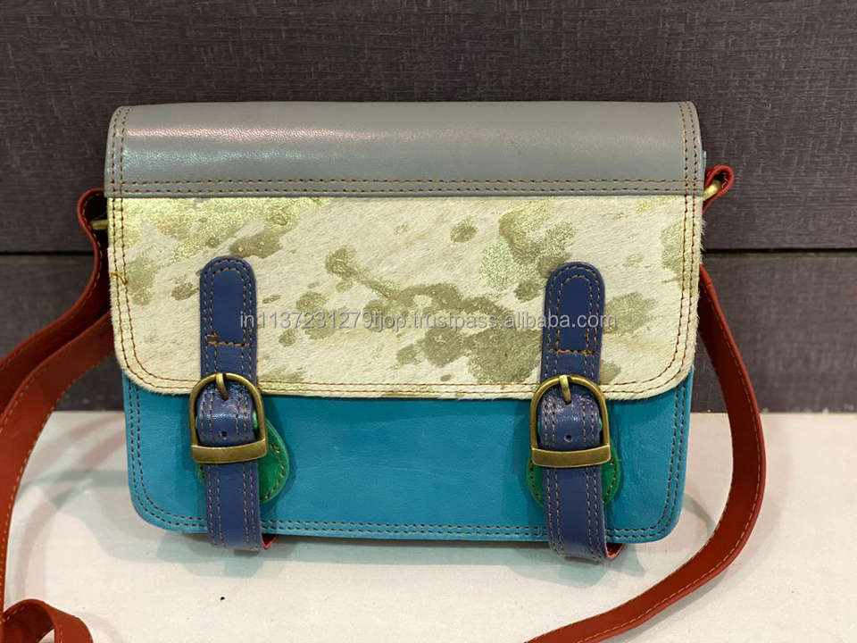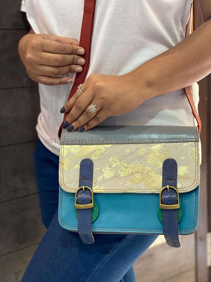 Real Handmade Recycled Leather Handbag Women Stubby Color Crossbody Purse High Quality Multiuse Sling Bag