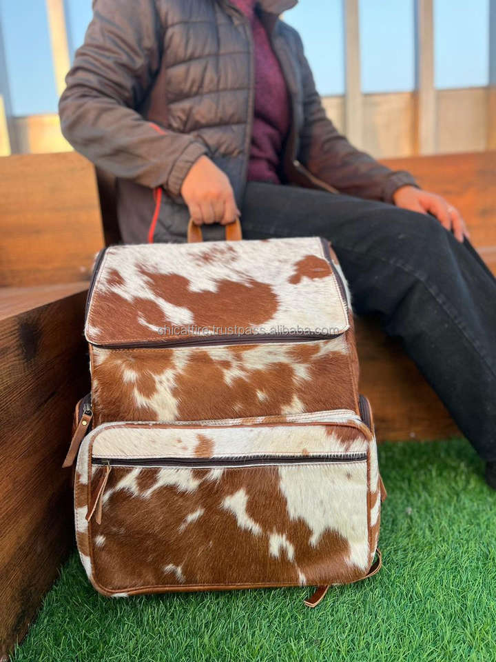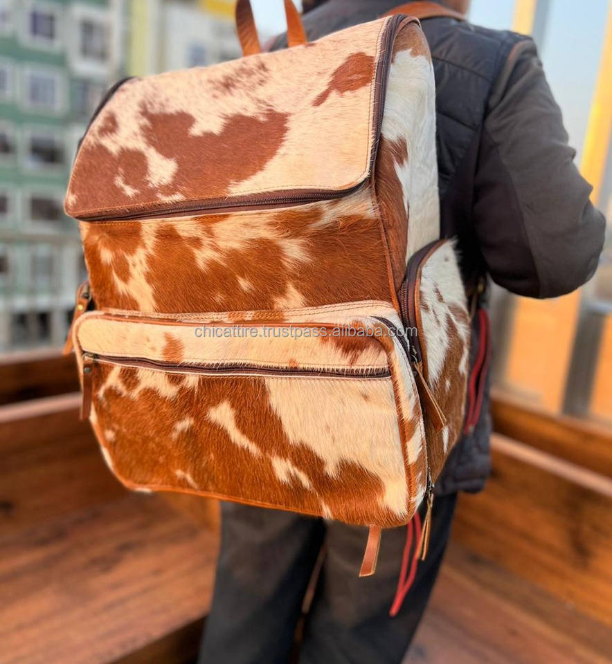 Real High Quality Real Handmade Hair on Hide Fur Leather Backpack Genuine Natural Cowhide Leather Vintage Casual Work Laptop Bag