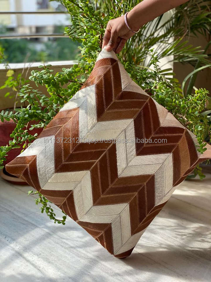 Real Leather Cowhide Patch Work Cushion Cover Stylish Fur Leather Home Decoration Cushion Cover