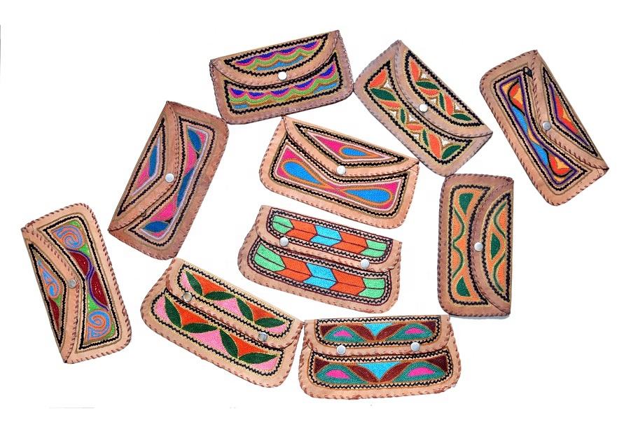 100% Genuine Leather Ladies Wallet Hand Embroidered Coin Pouch With Real Genuine Leather Money Purse Mobile Carry Wallet Handbag