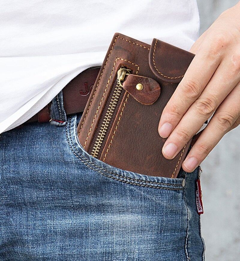 Real Leather Short Pocket Wallet MBF-0870 for Men Genuine Leather Card Purse with Cover Closure Slim and Stylish