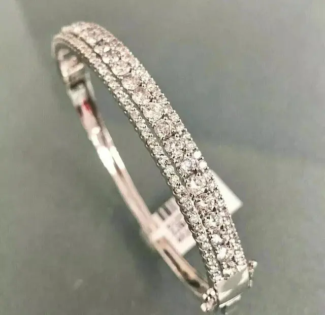 Tishya Diamond Real Moissanite 7.00Ct Round Cut Women's Bangle Bracelet Gold Plated 20gm