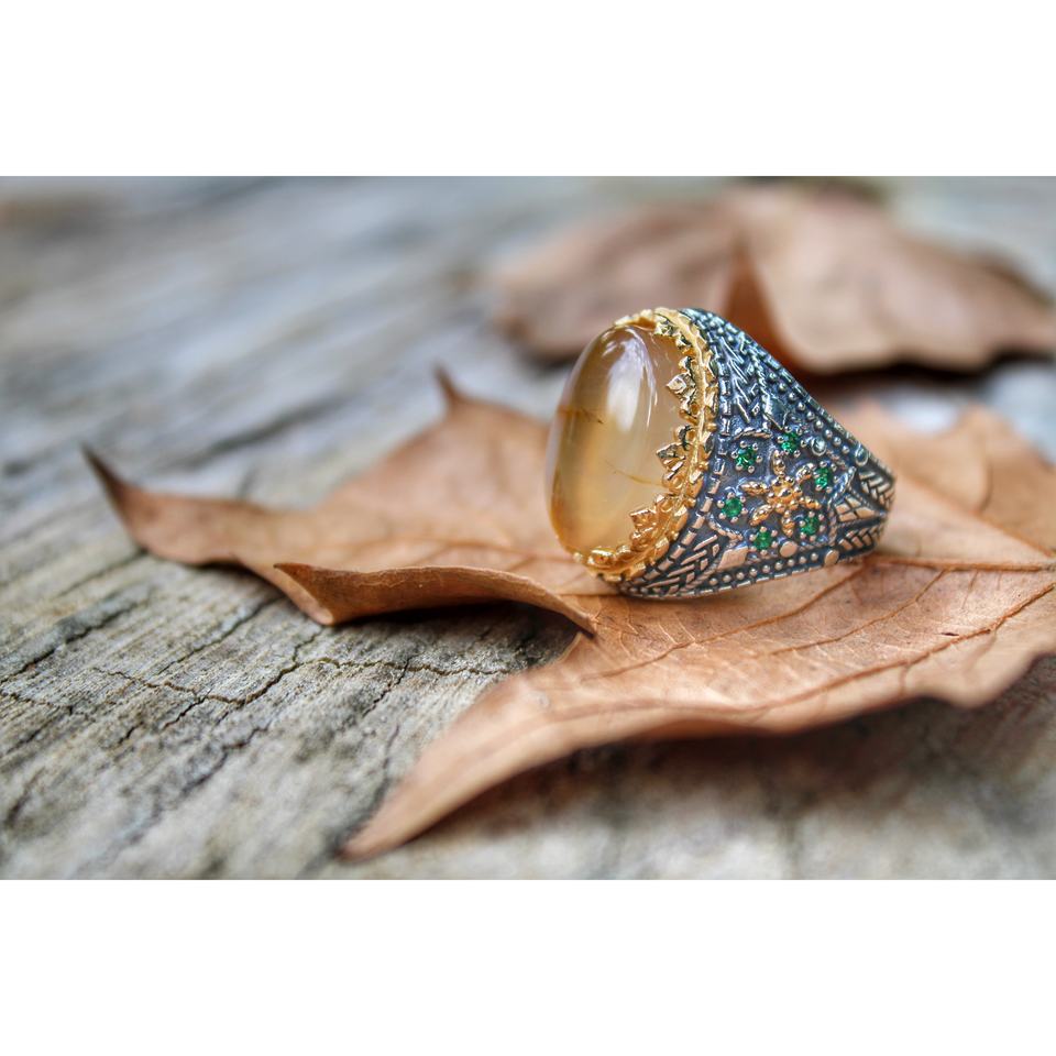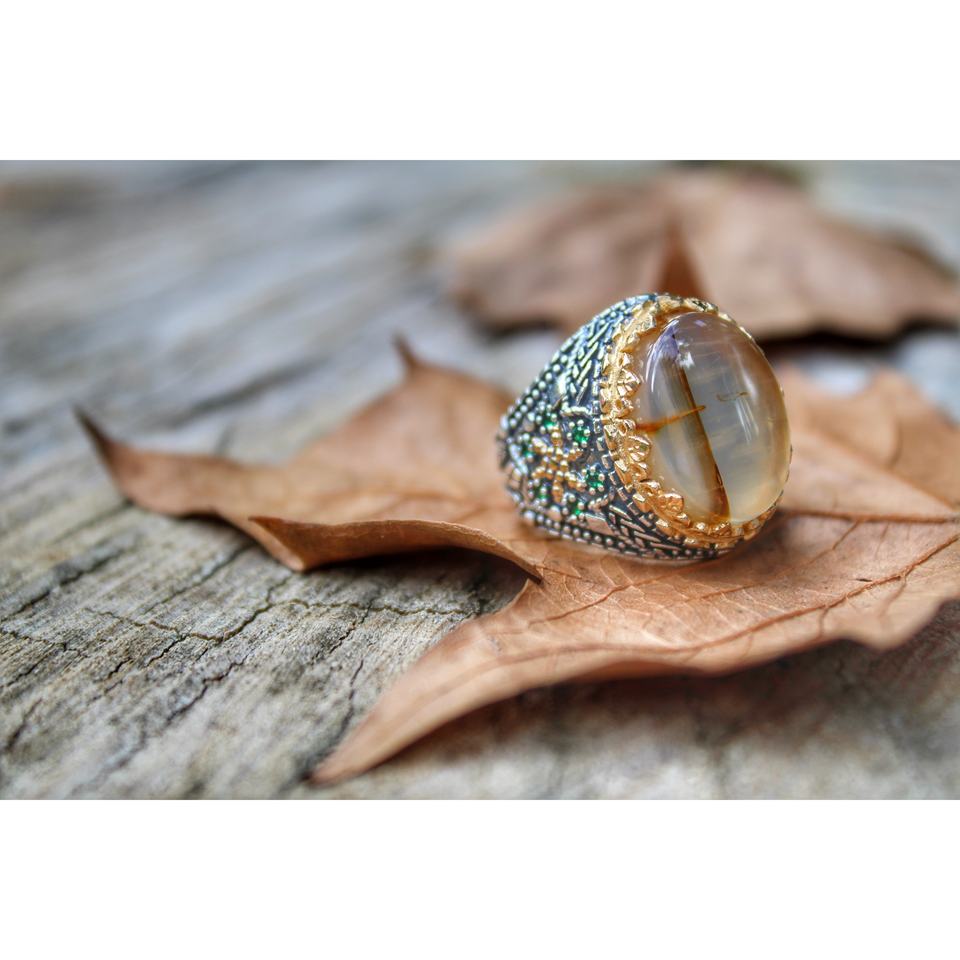 Real Pure 925 Sterling Silver Ring Handmade in Turkey Luxury Vintage Style Trendy New Model Real Agate Stone Crystal Material
