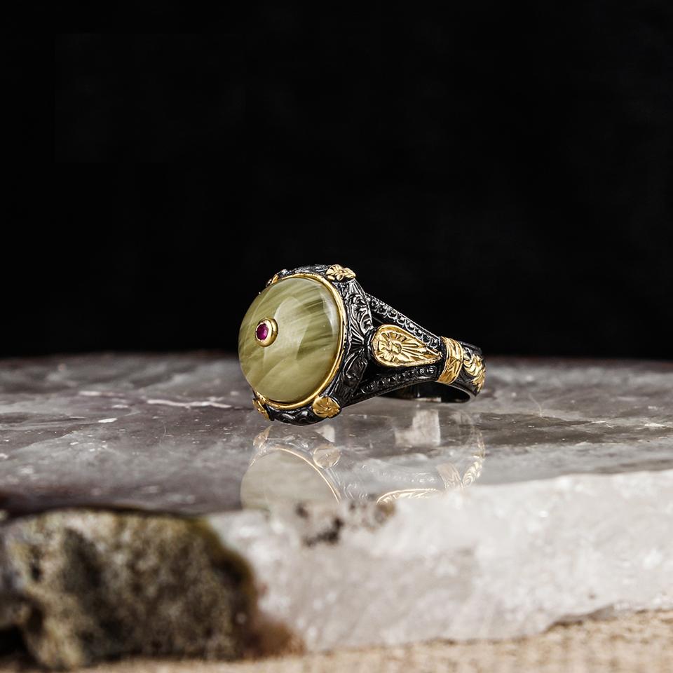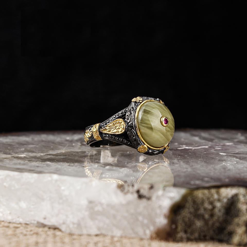 Real Pure 925 Sterling Silver Ring Real Citrine Stone Hand Made Made in Turkey Luxury and Trendy Model Vintage Style Model