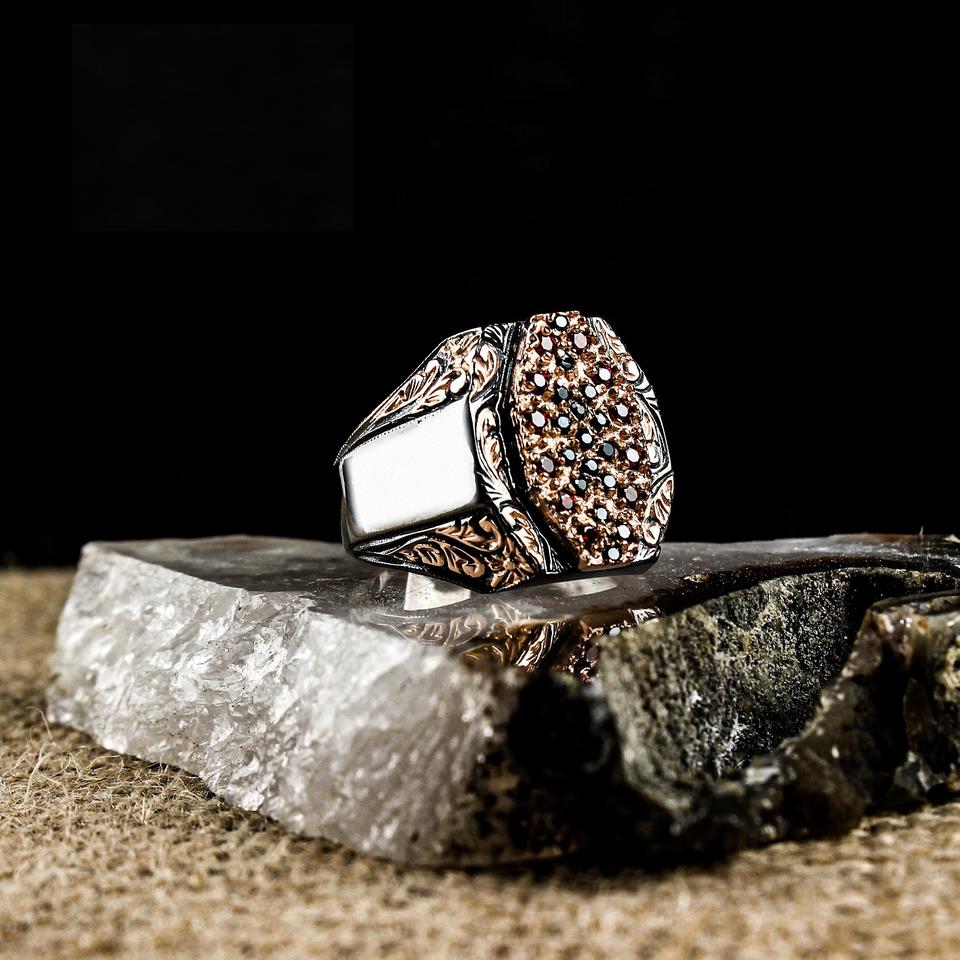 Real Pure 925 Sterling Silver Ring Handmade Luxury Trendy Vintage Style Model with Real Garnet Stone Made in Turkey