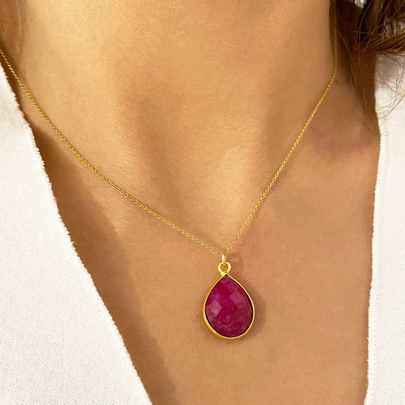 Real Ruby Pendant Necklace Handmade Red Gemstone Jewelry July Birthstone Necklace Elegant Gift For Her