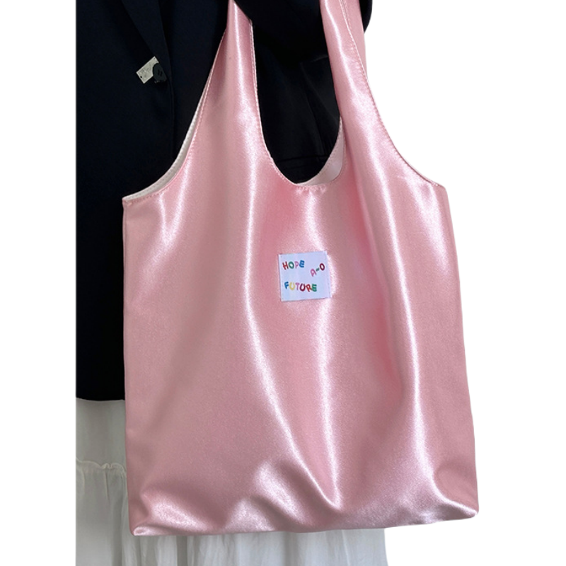 Real Silk Tote Bag for Women Soft Canvas Handbag with Zipper Closure Customizable Logo for Outdoor Shopping Travel Beach