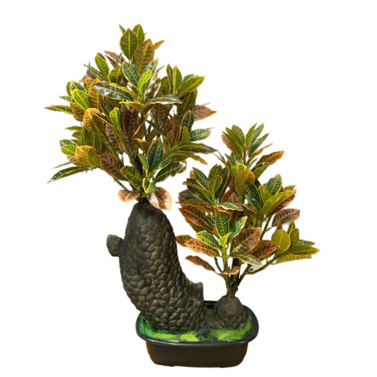 Real Touch Color Changing Wood Bonsai Wedding Banquet Decorative Artificial Codiaeum Plastic Plant Green Color Shrubs