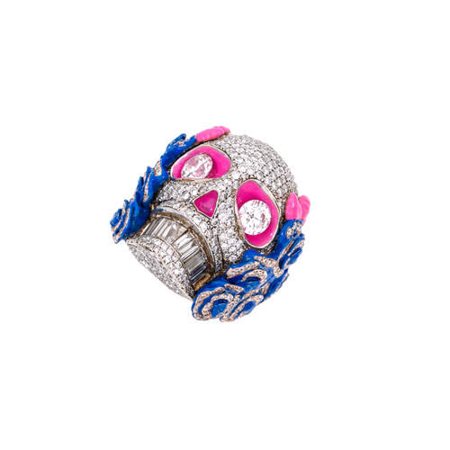 Real VVS Moissanite Diamond Skull Ring Glow in the Dark Hip Hop Style 925 Silver with Enamel Inlay for Collection or Party
